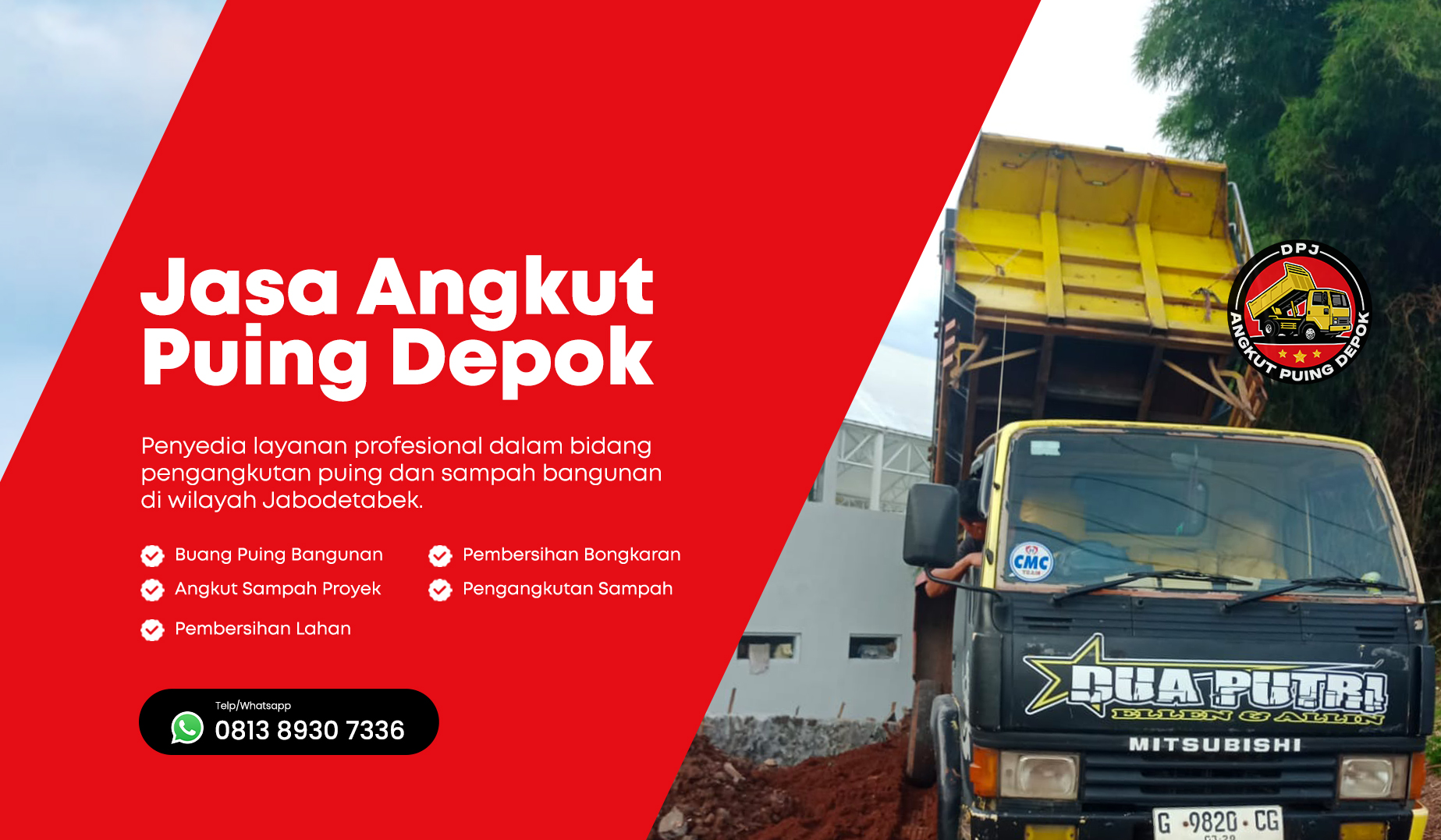 Hubungi Admin Jasa Angkut Puing Depok via WhatsApp dan jelaskan kebutuhan Anda